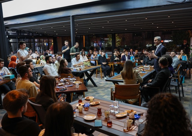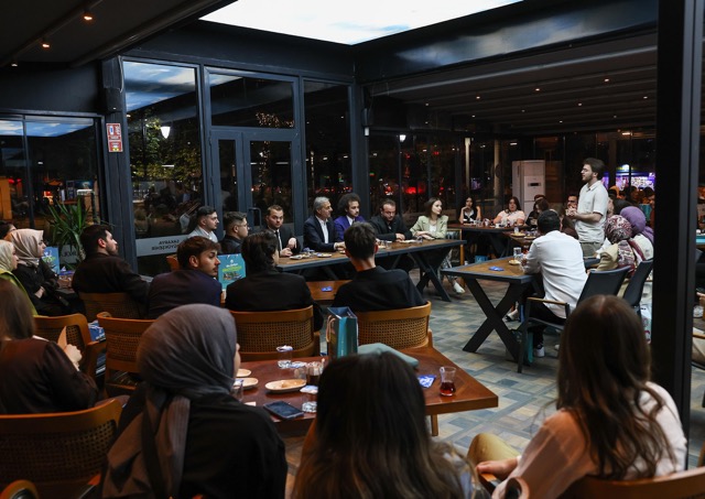 Başkan Alemdar, gençlerle sohbeti Nehir Çikolata Evi’nde kahve sohbetinde buluştu.