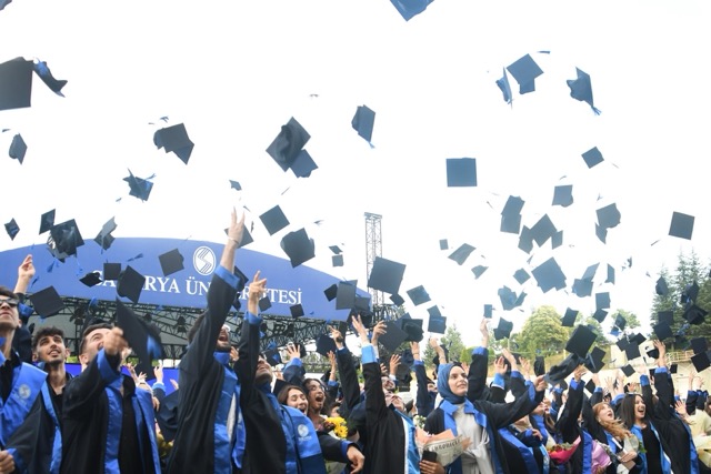 Mezuniyet töreni, öğretmen yeminleri ve ardından geleneksel kep atma seremonisiyle sona erdi.