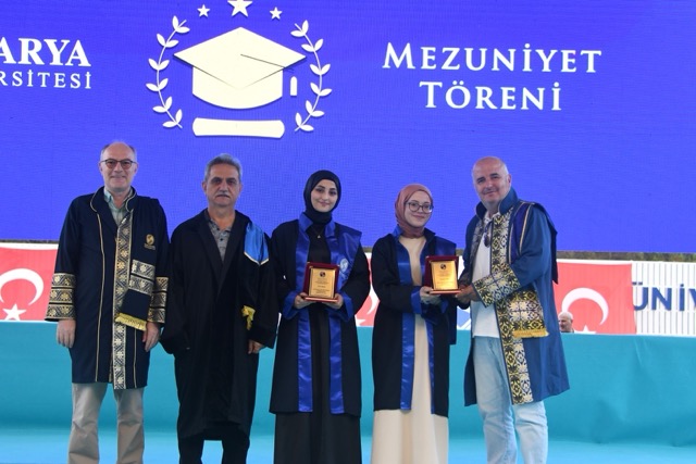 Törenin devamında fakülte birincisi Zeynep Aybek, ikincisi Nisanur Düzcan ve üçüncüsü Nurseza Ünal sahneye davet edildi. Nisanur Düzcan, mezuniyet kütüğüne ismini çakarak fakülte adına geleneksel bir sembolik anı yaşattı.